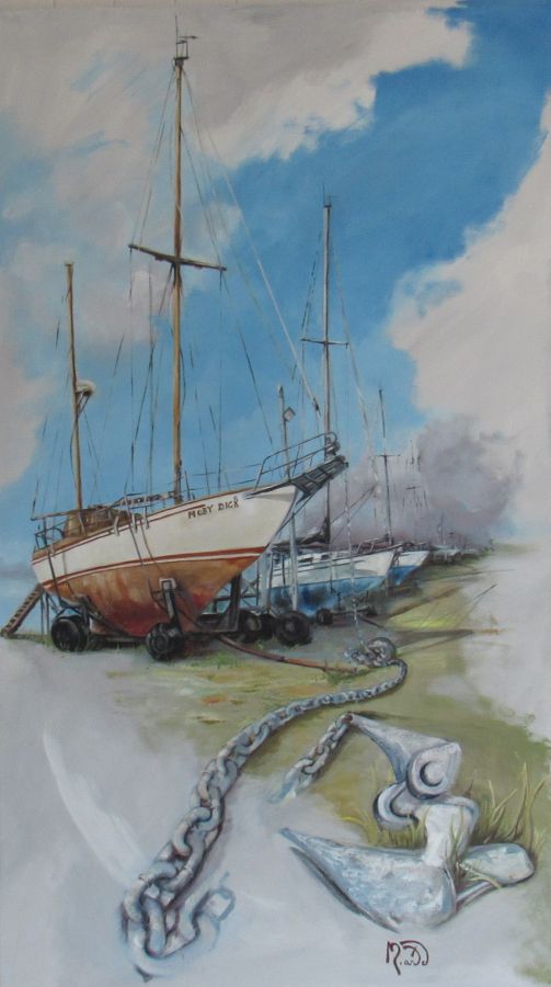 Charpentier de métier, son approche de la peinture est ancrée dans une réalité physique presque charnelle. Il utilise des matériaux bruts et du coton non traité pour fabriquer lui-même ses supports. Chaque toile devient un terrain d’expression où se mêlent précision et spontanéité. Il commence souvent avec une simple idée, parfois une image ou une photo, mais c’est l’émotion qui prend le relais, la toile s’épanouissant peu à peu comme un livre que l’on feuillette sans fin. L’eau, la mer, les voiles : ses premières amours restent des sources d’inspiration intarissables.
