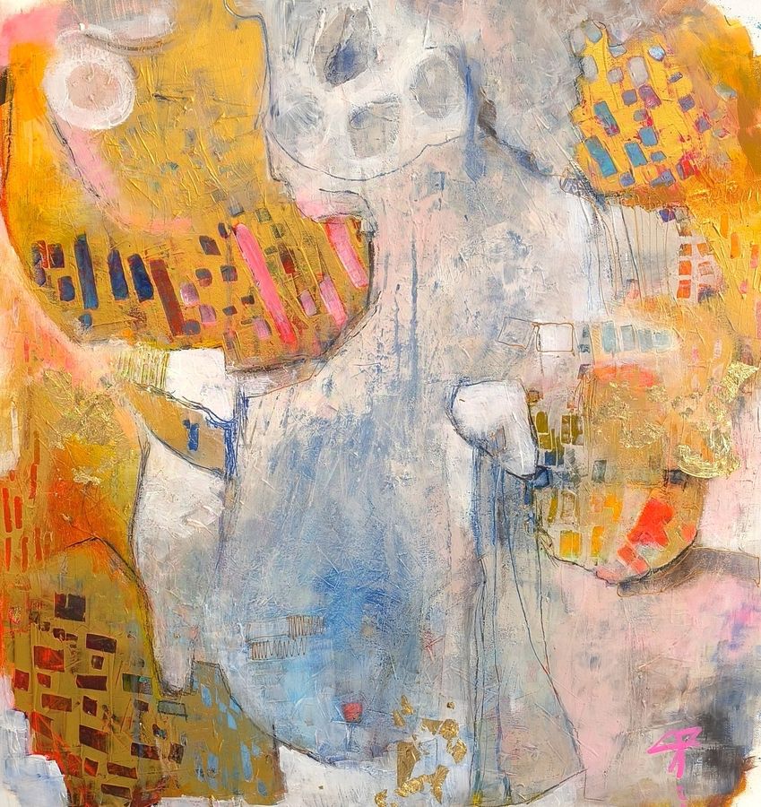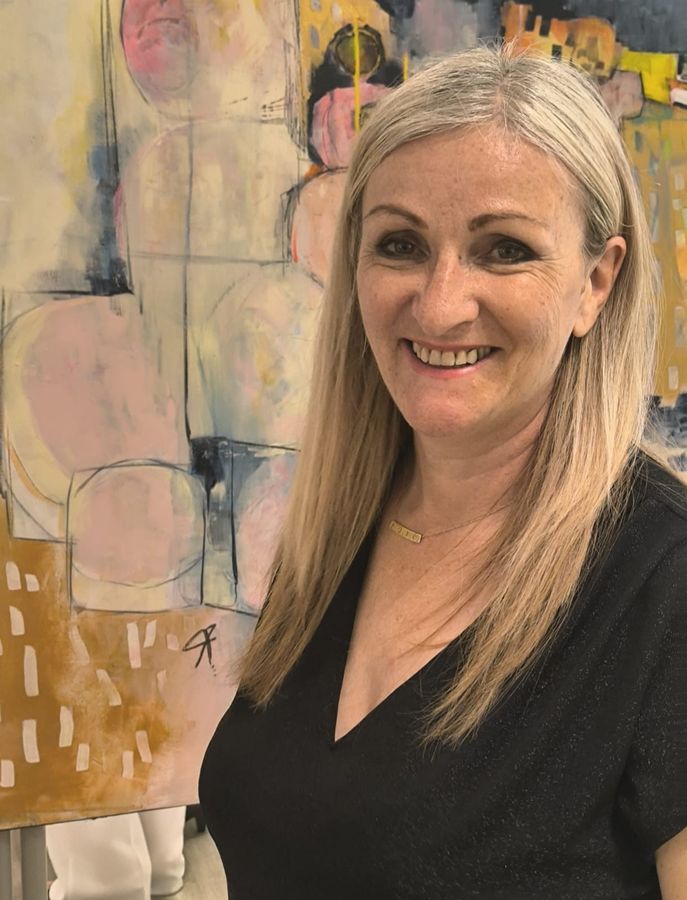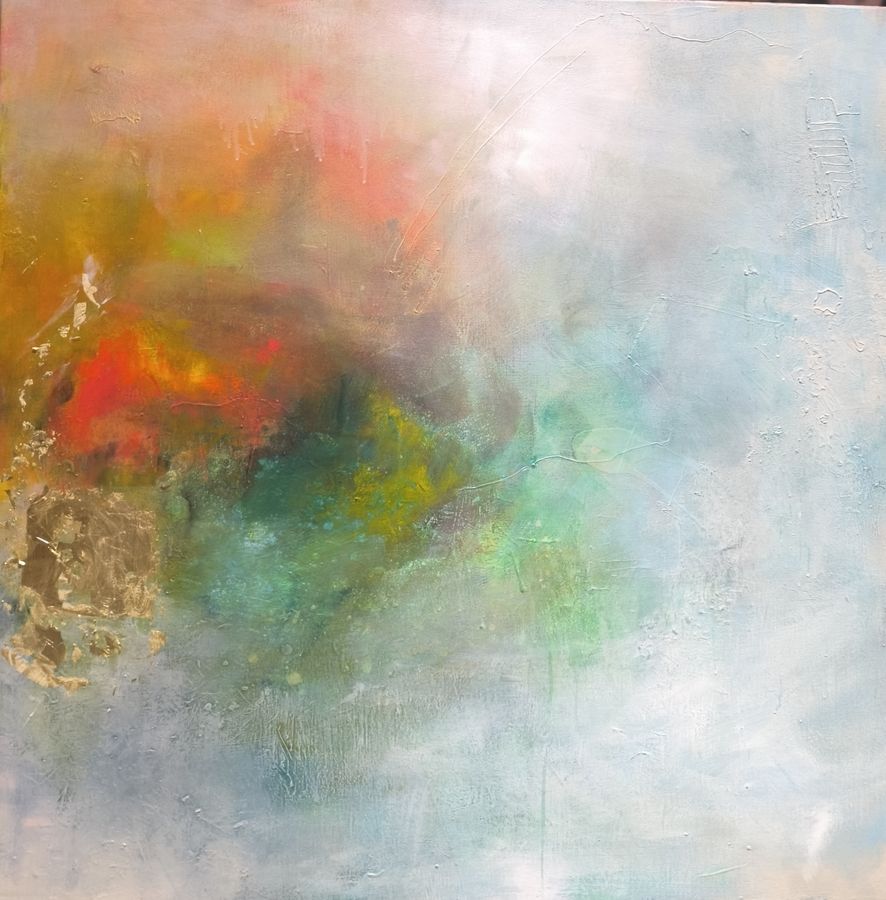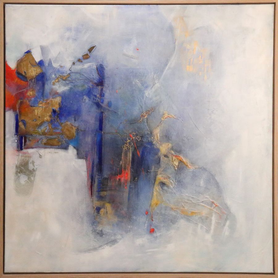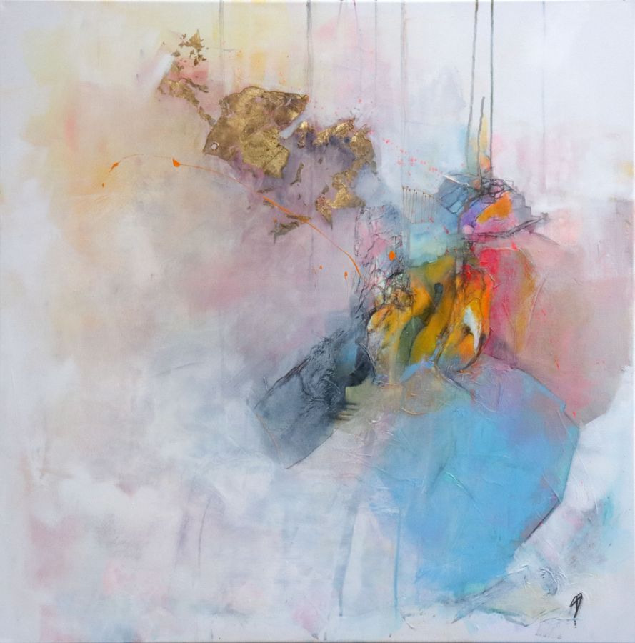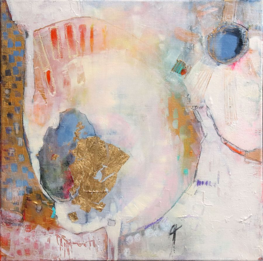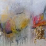 Après plus de quinze années de figuratif, l’abstraction s’impose comme une liberté : pas une rupture mais un espace d’ouverture. Elle lui permet d’explorer autrement la peinture, d’y insuffler plus de mouvement, de vibration et de respiration tout en restant ancrée dans des bases construites. Depuis 2018, l’abstraction occupe une place centrale dans son travail. Ses toiles, pensées et construites, reposent sur des règles de composition précises, des palettes souvent douces traversées de points plus affirmés qui guident la lecture et le regard.