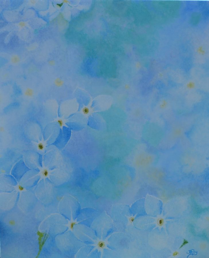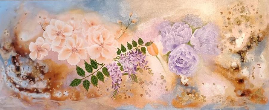 Curieuse, elle explore sans cesse les techniques et les matières : acrylique, huile, encres à l’alcool, fusain ou pastel. Ses œuvres se reconnaissent à leurs tons doux et désaturés, porteurs de romantisme et de sérénité. Influencée par Vladimir Volegov et les impressionnistes, elle cherche la lumière, la paix et la sensibilité dans chaque nuance.