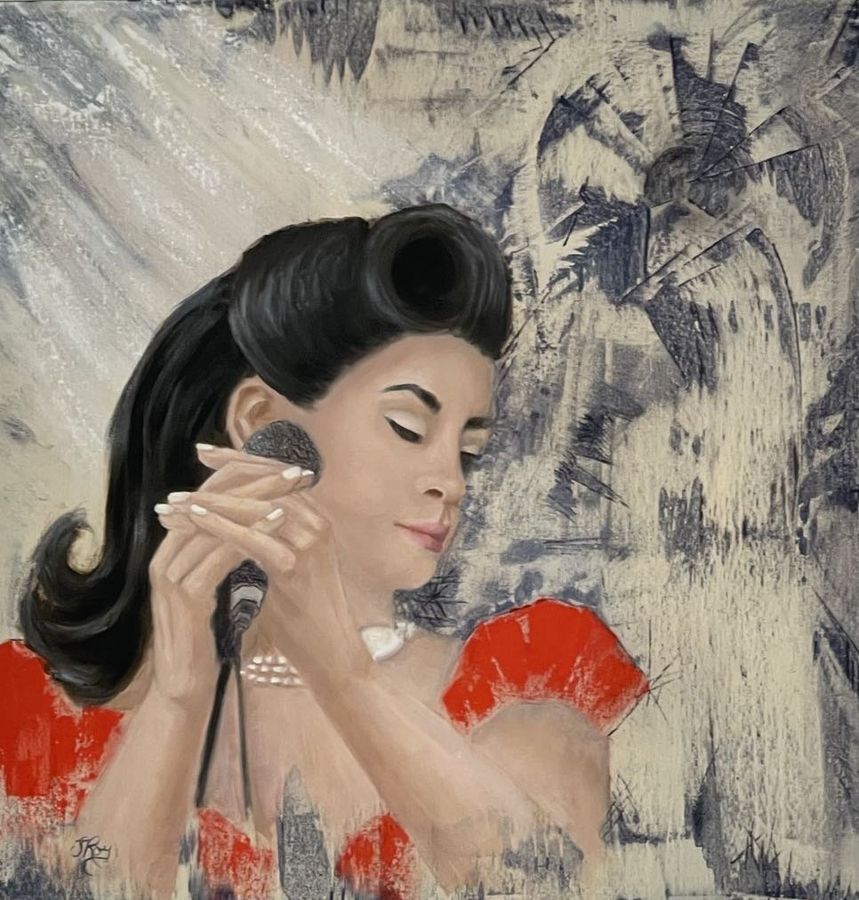 Artiste, enseignante et chanteuse de jazz, Jasmine Roy a cette élégance rare des âmes plurielles. Elle peint la beauté — celle de la vie, des visages, des fleurs — avec le même désir : embellir le monde, une toile à la fois. Chaque œuvre naît d’un coup de cœur. Une image la touche, une émotion l’habite, alors elle la transpose sur la toile en y ajoutant son univers. Les personnages naissent d’une photo, mais le décor, lui, appartient à son imaginaire. Elle ne reproduit pas, elle réinvente.