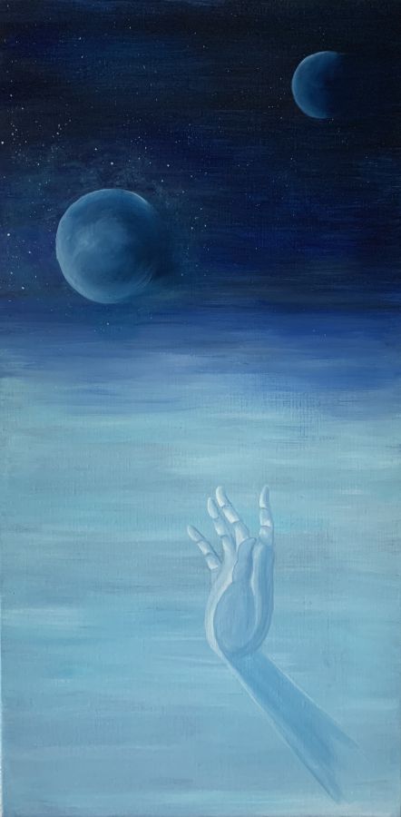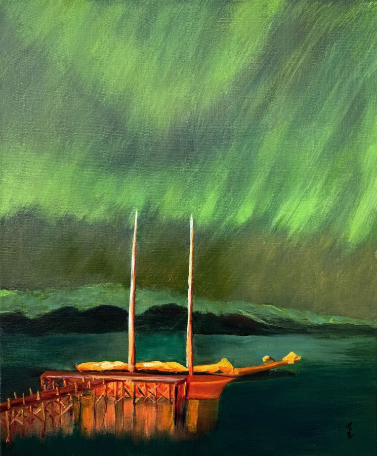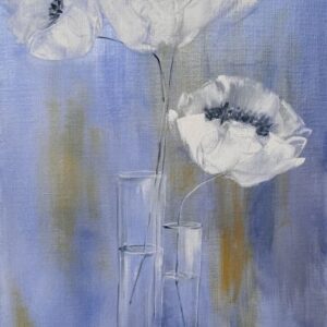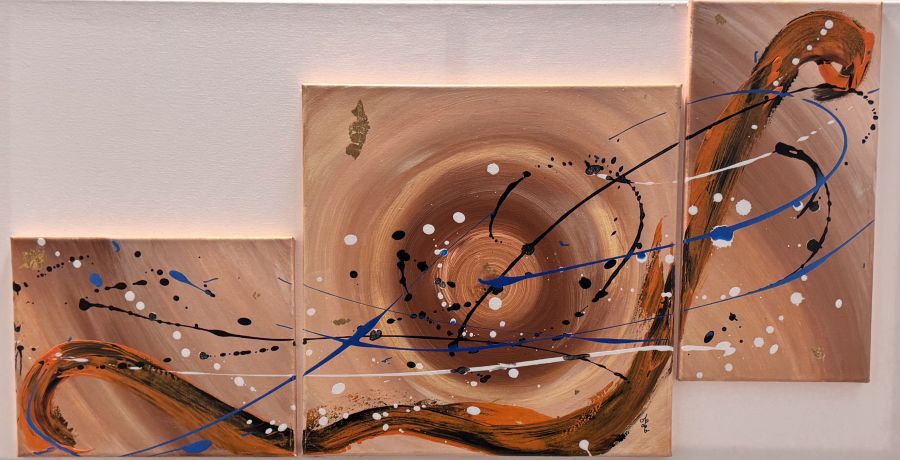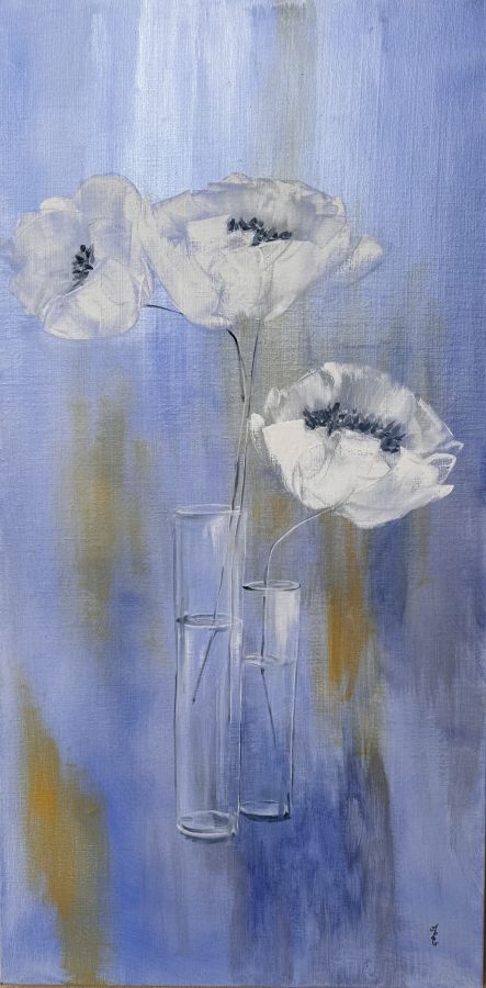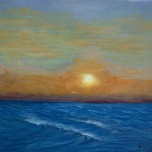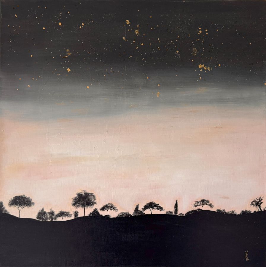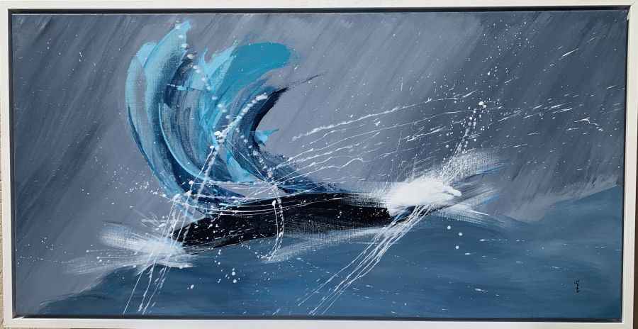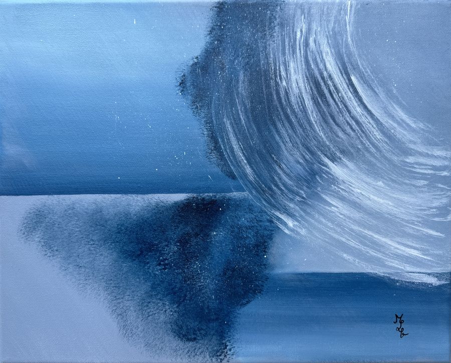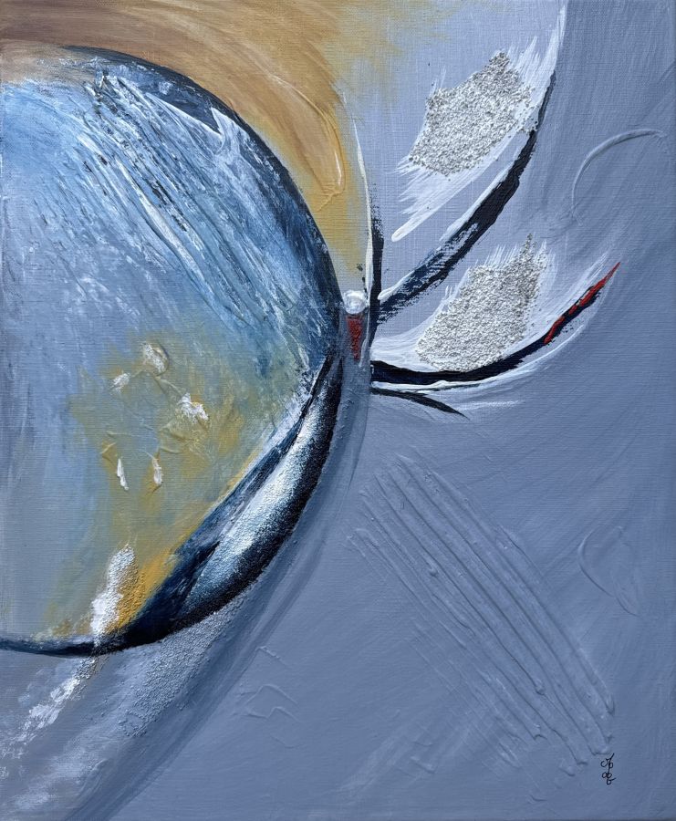 Installée en bord de mer, elle expose régulièrement avec une association d’artistes locaux. Ces rencontres la nourrissent : elle aime le partage, le dialogue, la résonance entre son monde intérieur et celui du public. Dans le calme, entre ciel et mer, elle laisse la magie opérer — et fait de chaque toile une vibration d’âme.