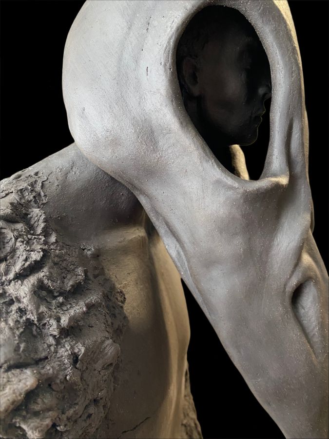 Depuis un an, elle s’est installée dans son propre atelier à Frelighsburg, où elle crée en toute autonomie. Entourée d’une nature sublime autant qu’inspirante, elle travaille la terre qu’elle cuit ou fait couler en bronze avant de la monter sur pierre. Ses pièces monumentales, quant à elles, semblent destinées à vivre dehors, à s’ancrer dans la nature.