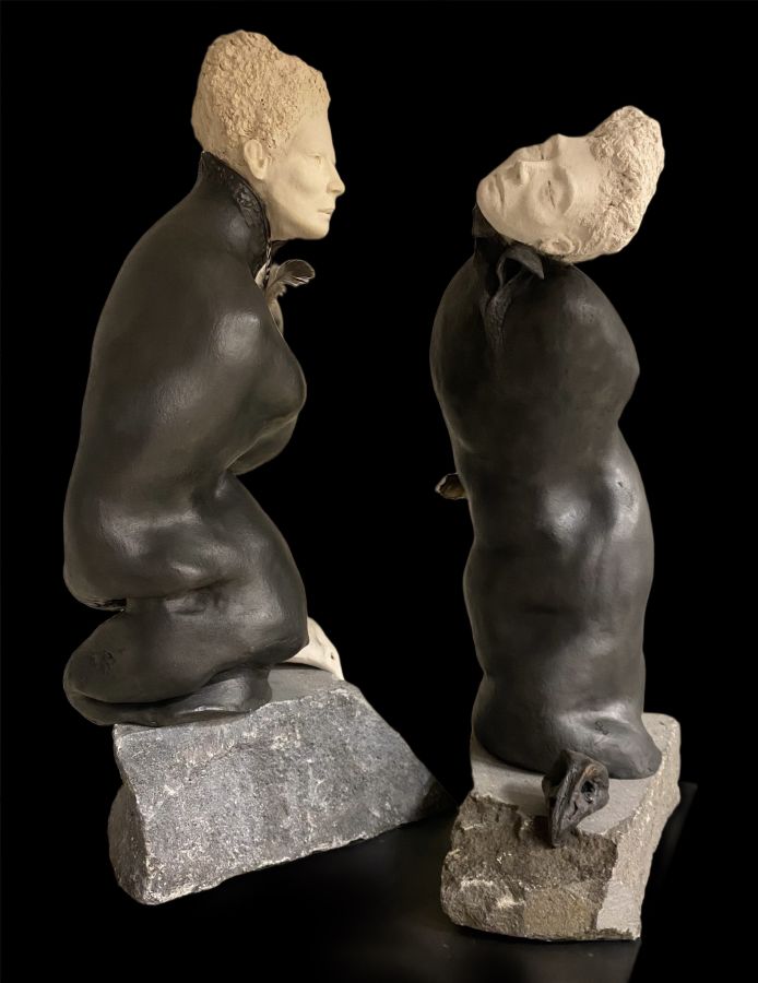 Chez Valérie Pascale Lauzon, la sculpture n’est pas un art figé : c’est un dialogue vivant entre la matière et l’âme. L’histoire commence dès l’enfance, quand sa mère suit des cours auprès de l’épouse du sculpteur Jordi Bonet. Cette proximité initie Valérie à l’univers du modelage et à la sensualité du geste créatif. Très tôt, elle comprend que la sculpture peut être un refuge, un moyen de dire sans mots, de ressentir sans expliquer.